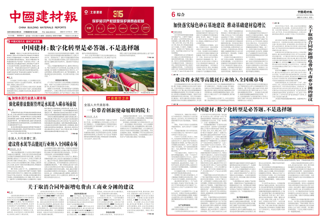 2023年全國兩會政府工作報告把“加快建設現(xiàn)代化產(chǎn)業(yè)體系”列為重點工作之一,明確提出要大力發(fā)展數(shù)字經(jīng)濟,加快企業(yè)數(shù)字化轉(zhuǎn)型,著力提升高端化、智能化、綠色化水平?!吨袊ú膱蟆诽卦O“中國式現(xiàn)代化·建材產(chǎn)業(yè)實踐”專欄,刊發(fā)了中國建材集團黨委書記、董事長周育先的專訪文章。小料將全文分享給大家。